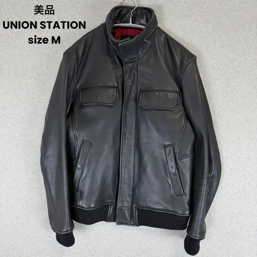 새상품급 UNION STATION 하이넥 리브 가죽 자켓