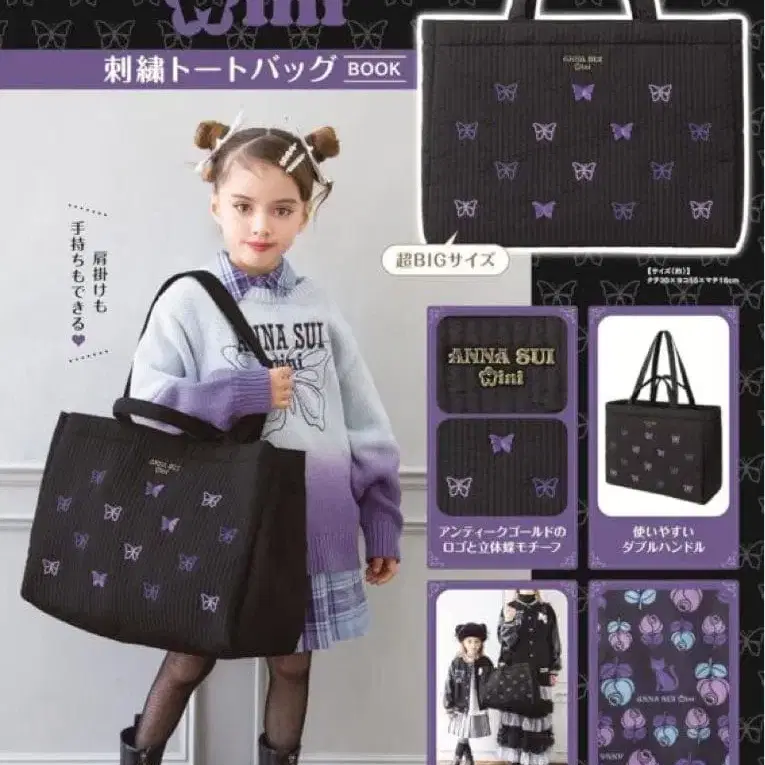 자동 번역되었어요. 원문보기자수와 입체 부품으로 장식된 나비가 멋진 / ANNA SUI mini 자수 토트백 BOOK [ 부록 ] 자수 토트백