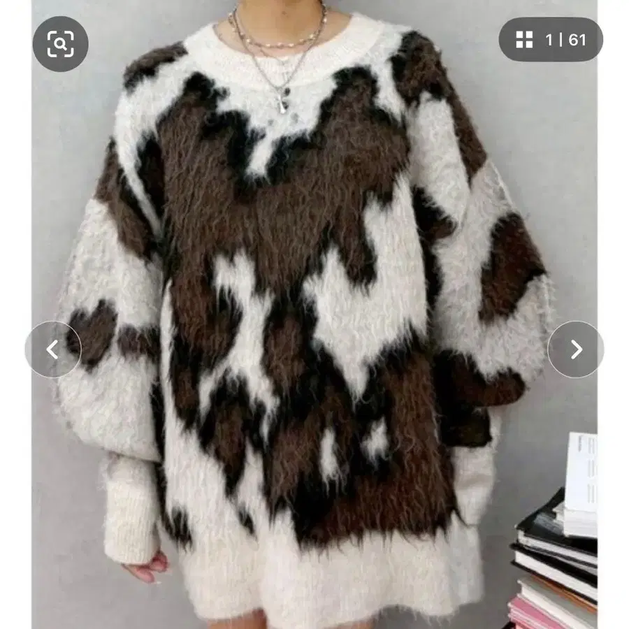 EVRIS 애니멀 무늬 오버 사이즈 니트