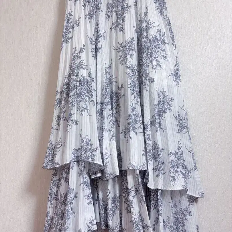 SNIDEL 플리츠 프린트 스커트 블루