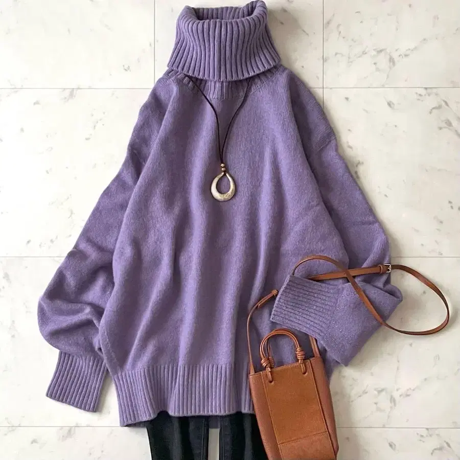 새상품급*프레임워크 울 캐시미어 터틀넥 니트 퍼플 긴팔 일본제