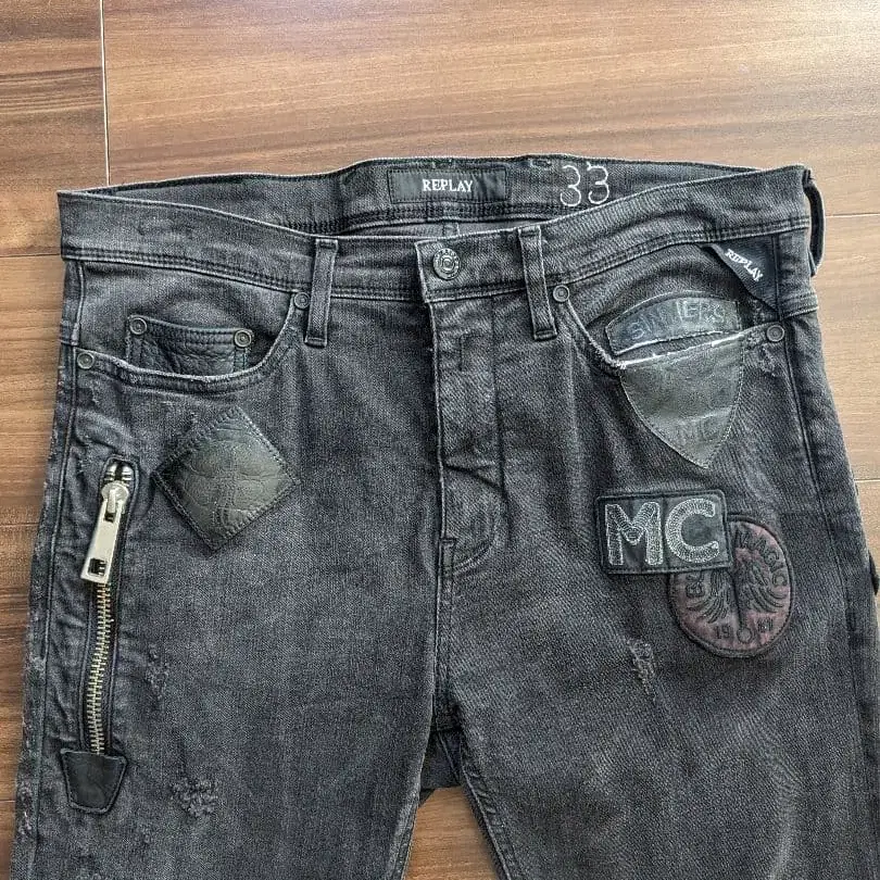 이탈리아 데님 브랜드 REPLAY의 JONDRILL 다크 그레이 청바지, 사이즈 33, 스키니 핏 디자인. 착용 횟수 4-5회 정도. 패치와 지퍼 포켓이 달린 스트레치 스키니 데님, 데미지 가공이 특징. - 브랜드: REPLAY - 모델명: JONDRILL - 사이즈: 33 - 스타일: 스트레치 스키니 데님 - 색상: 다크 그레이 - 디자인: 패치 부착, 지퍼 포켓, 데미지 가공 컬렉션으로 걸어두었던 것으로, 착용은 몇 번 하지 않아 새상품급으로 보입니다. 인기 있는 33 사이즈이므로 빠른 분이 임자입니다. 가격은 여기서 인상될 예정이므로 지금 보고 계신 가격이 최저가입니다. 발송은 유 패킷 포스트를 예정하고 있습니다. 접힘 주름은 양해 부탁드립니다. 방문해 주셔서 감사합니다. 데님 색상 - 블랙 얼룩, 찢김, 냄새 등 - 없음