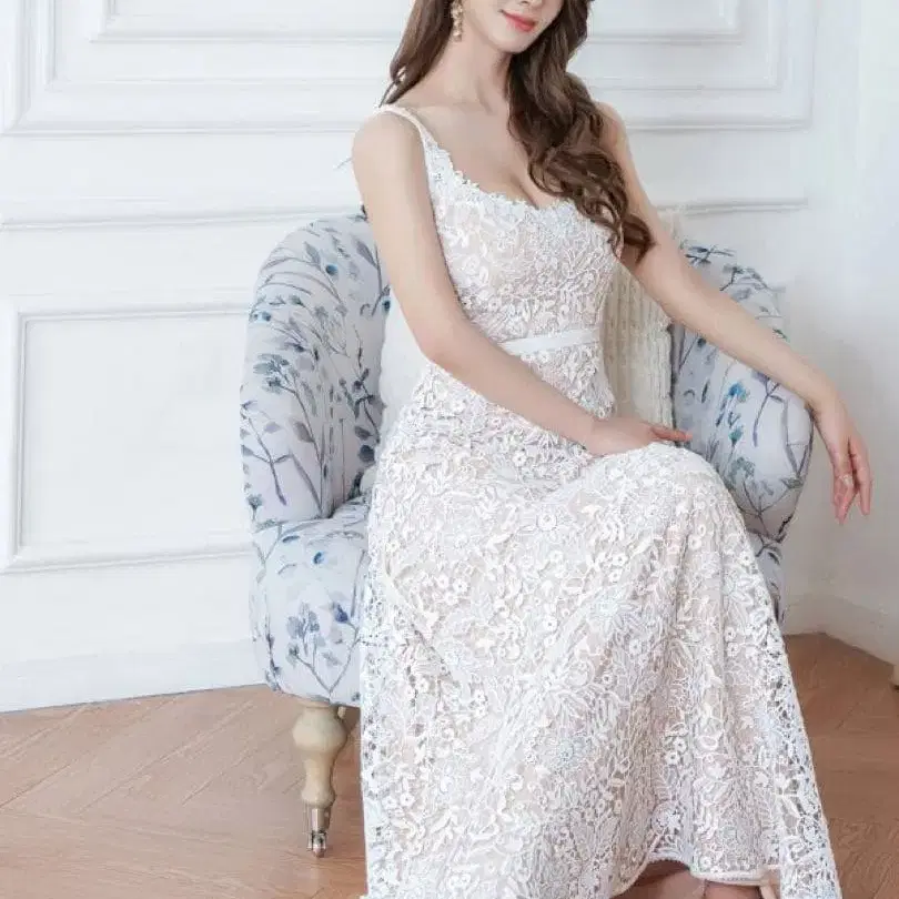Settann 화이트 레이스 맥시 드레스