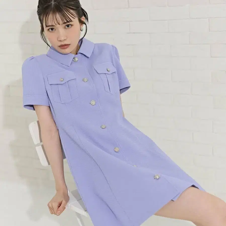 REDYAZEL 엠블럼 버튼 마이크로 와플 셔츠 원피스 퍼플
