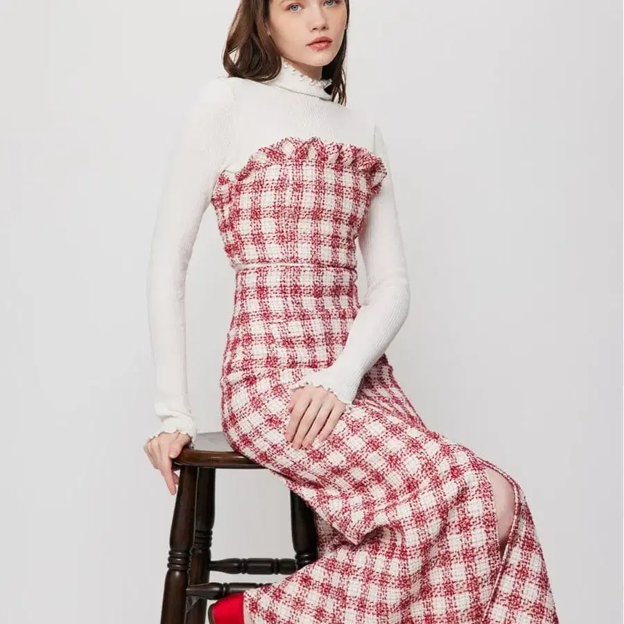 DEICY 루프 체크 뷔스티에 머메이드 스커트 SET