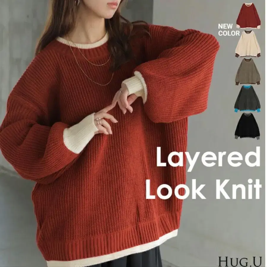 레이어드 룩 니트 레드 x 화이트 FREE 사이즈