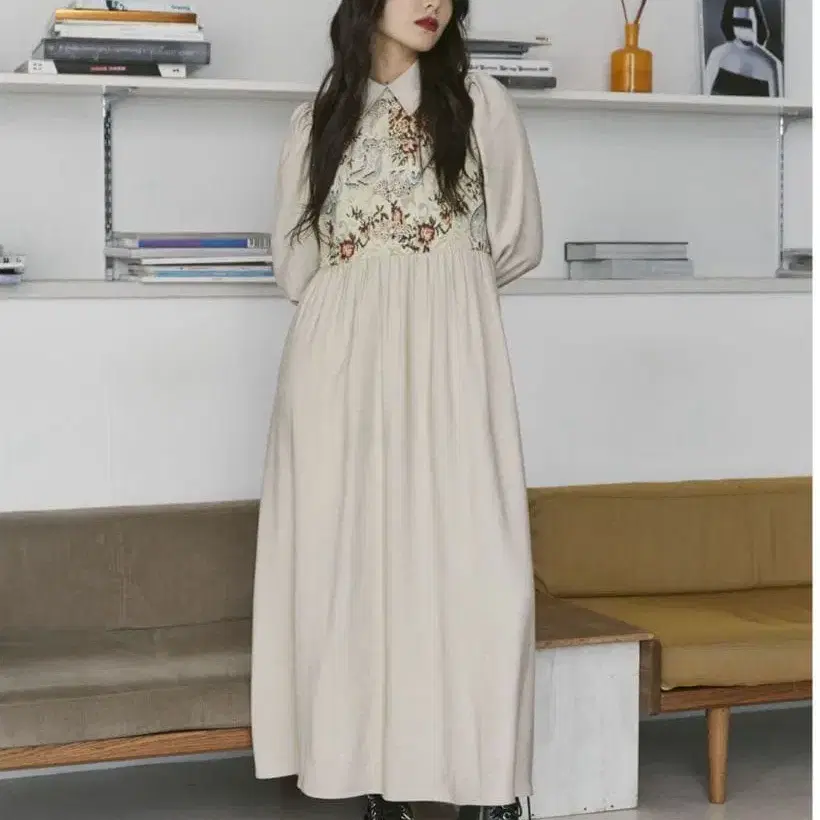 고블랑 차이나 플레어 원피스 아이보리 베이지 롱 셔츠 원피스