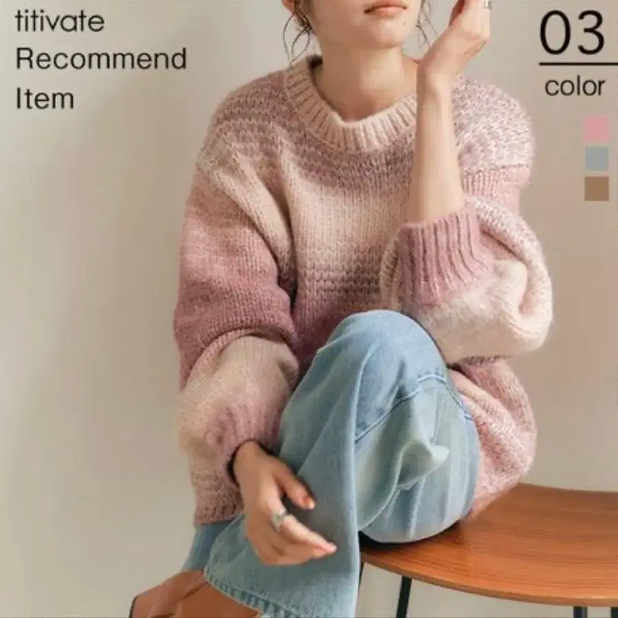 티티베이트 그라데이션 니트 핑크 M 사이즈