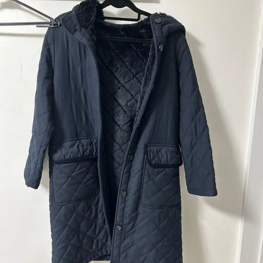 BEAMS 네이비 퀼팅 자켓 후드 부착