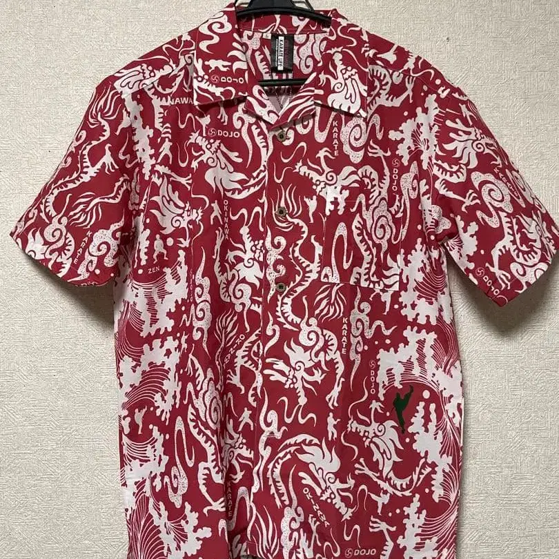DOJO 하와이안 셔츠 드래곤 패턴 레드/화이트