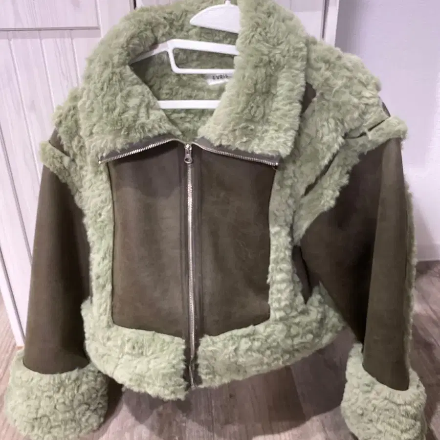 EVRIS 그린 숏 페이크 무스탕 블루종