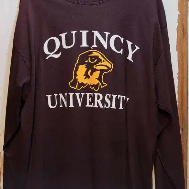 퀸시 대학, 호크스의 칼리지 티셔츠. 팀 컬러인 화이트 x 브라운에 맞춰, 바디가 초콜릿색이며 롱티로는 드문 아이템입니다. 애니멀 머스타드 컬러도 ◎, 전체적으로 깊이감이 귀엽습니다.