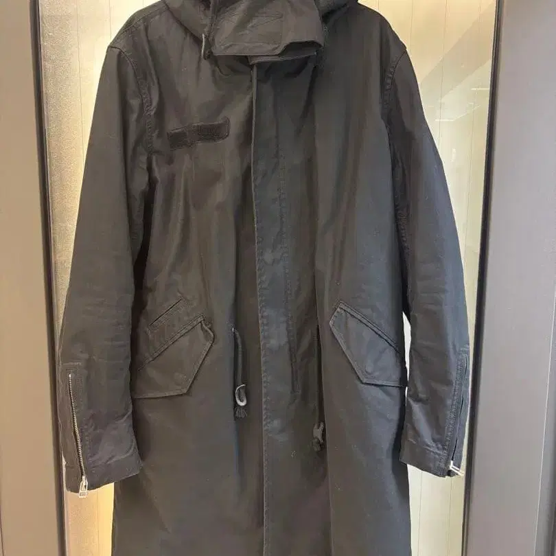 라쿤 후드 퍼, 후드 부분의 가죽 클로징 1개 결품