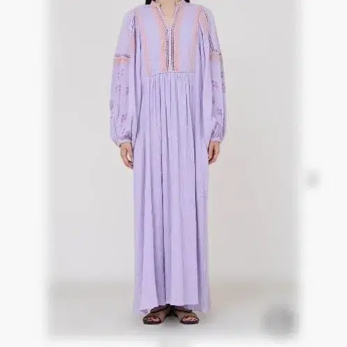 누키테 라벤더 긴팔 V넥 맥시 원피스