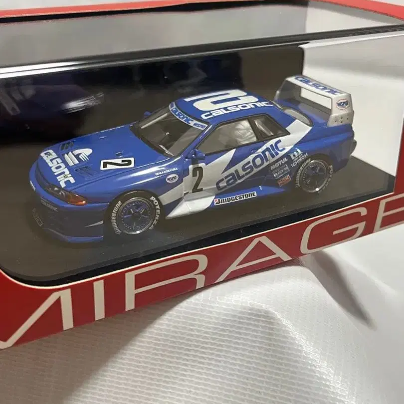 1993년 10월 후지 스피드웨이에서의 Calsonic Skyline GT-R (#2) 미니카, 1/43 스케일입니다.