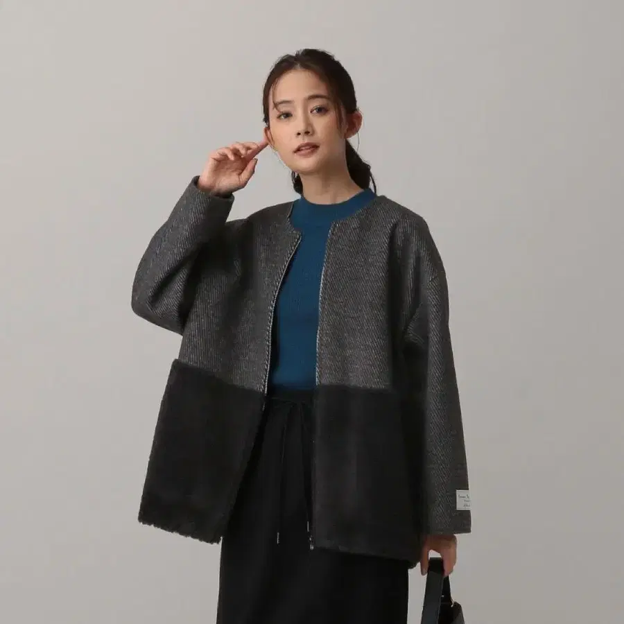 이종 소재의 보아 절개가 눈길을 끄는 노카라 코트.