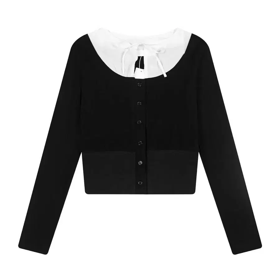 Not your rose 리본 포함 옷깃 크롭 니트 가디건