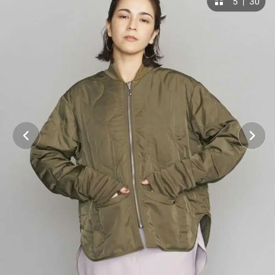 카라와 소매의 리브 사용, 지퍼 여밈의 프론트가 밀리터리 분위기를 더합니다.