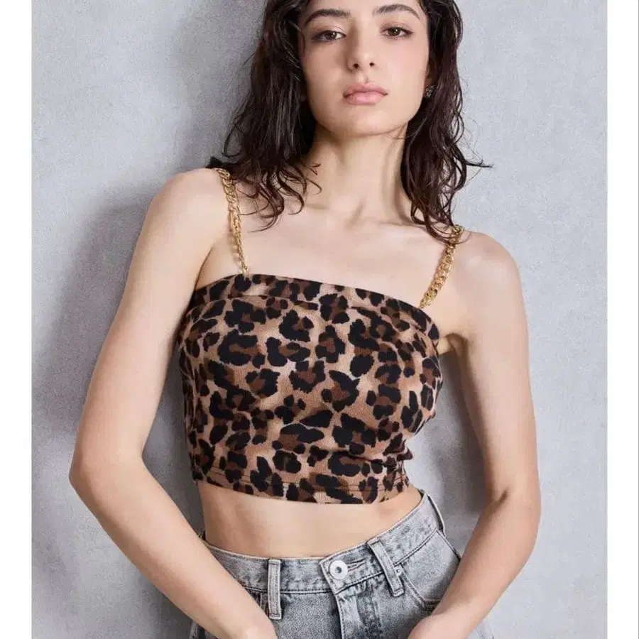 GYDA 레오파드 무늬 체인 스트랩 골지 뷔스티에