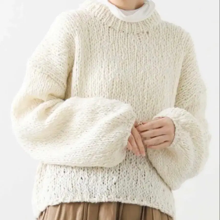 그레디 브릴리언트 울 혼방 슬라브 크루넥 퍼프 슬리브 니트