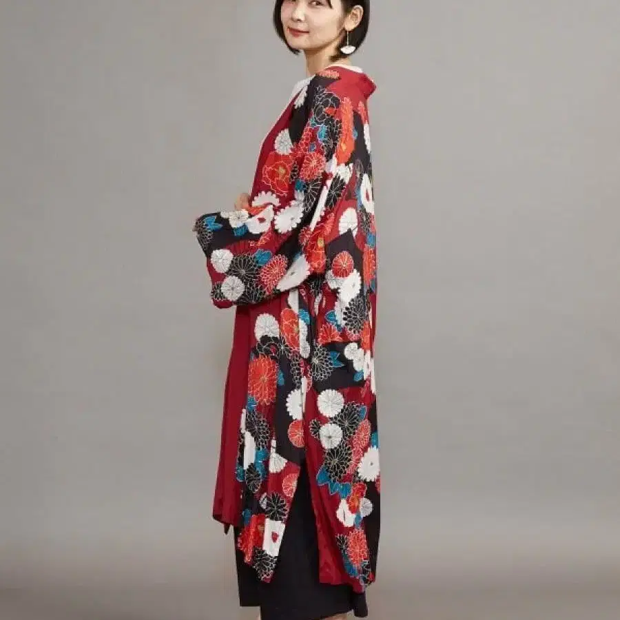 재패니즘 축하 긴 겉옷 빨간색 부채 가을 가디건 앤티크 다이쇼 로망