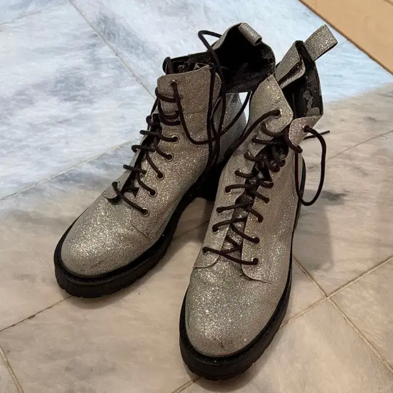 실버 글리터 하이컷 부츠