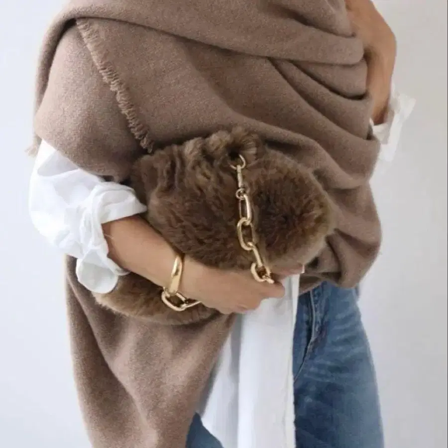 새상품급 두지엠 클라세 브라운 퍼 백 골드 체인
