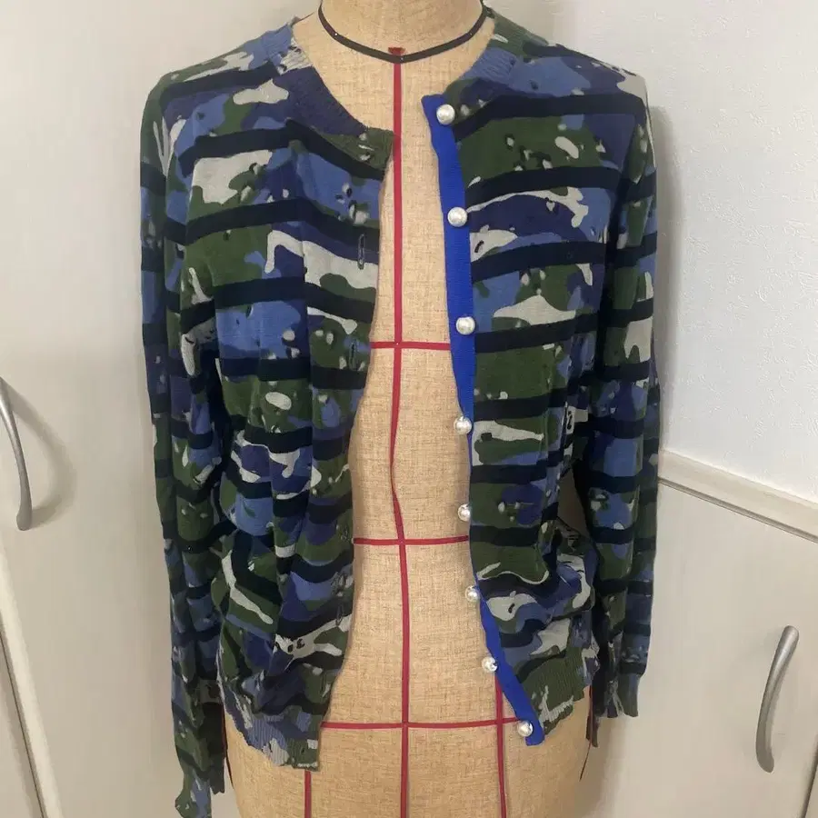 MUVEIL WORK 카모 패턴 버튼 긴팔 가디건