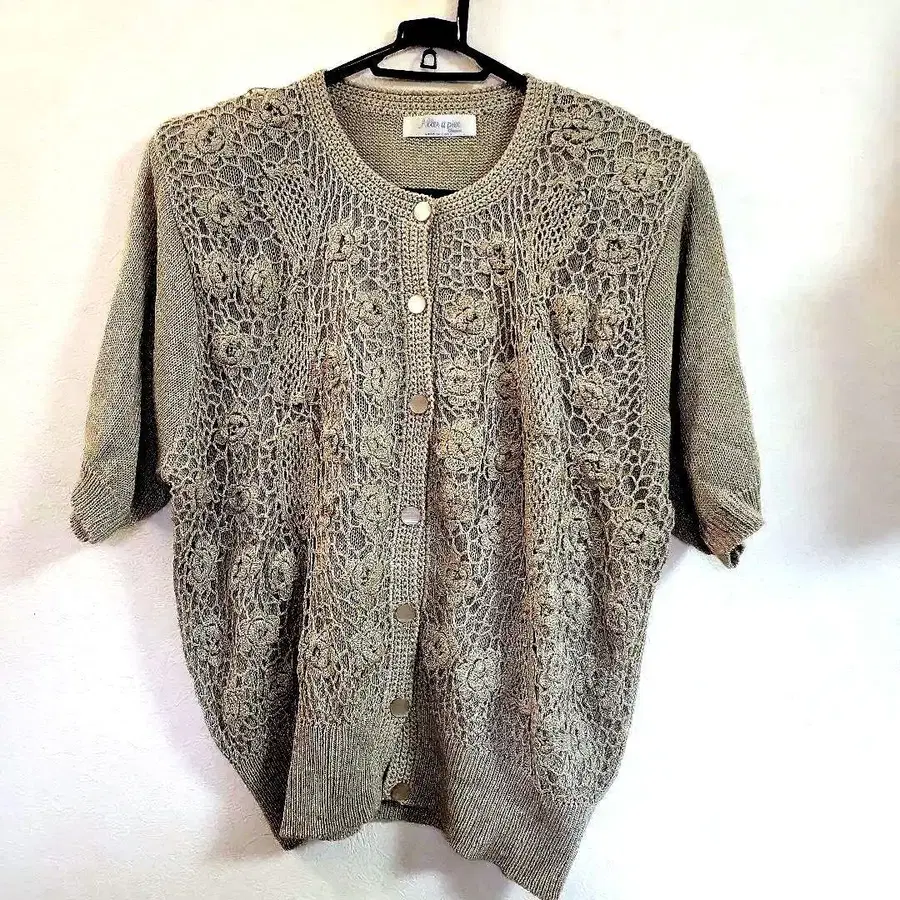 새상품 Allen & pico 베이지 레이스 편직 반팔 가디건
