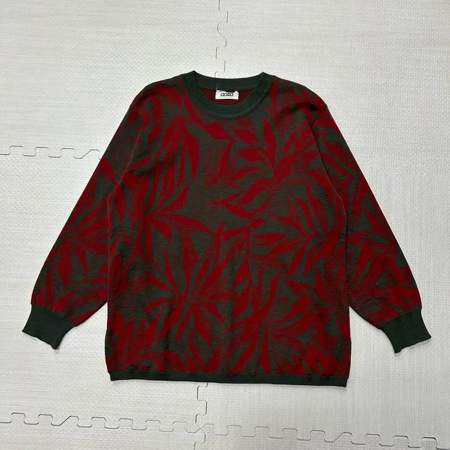 GOZO 레드 리프 무늬 긴팔 니트 아카이브 그런지 y2k