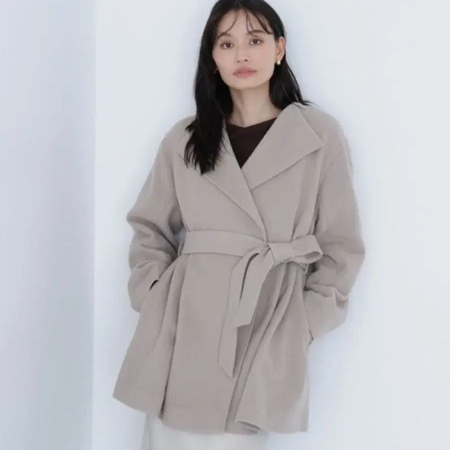 NATURAL BEAUTY BASIC 벨티드 미디 코트 베이지
