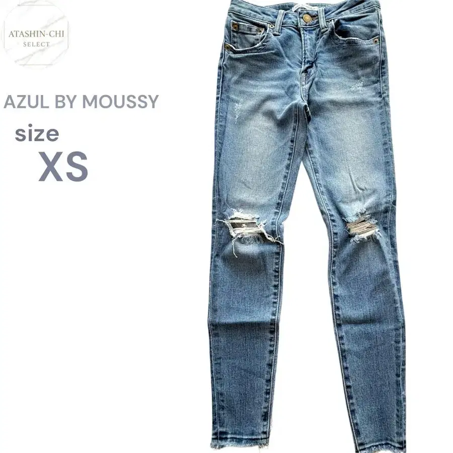 AZUL by moussy 데미지 스키니 XS 미색 슬림 레그