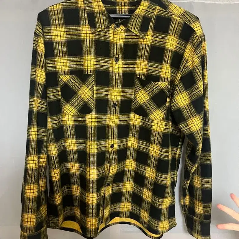 플란넬 셔츠 블랙과 옐로우 컬러 체크 M