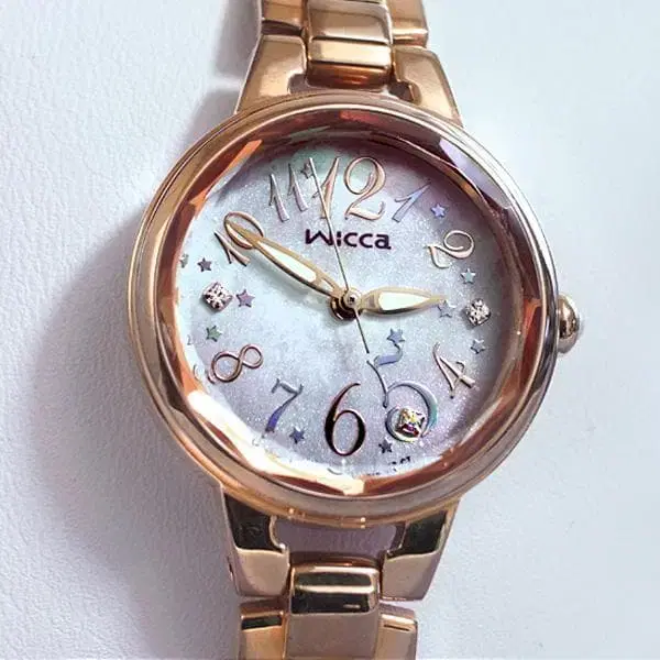 시티즌 WICCA 솔라 시계 핑크 골드 다이아몬드 쉘 다이얼