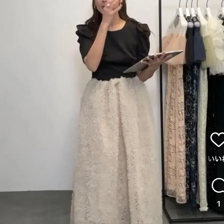 풍성한 튤을 사용한 포근한 플라워 튤 자수 엠보싱 스커트에,