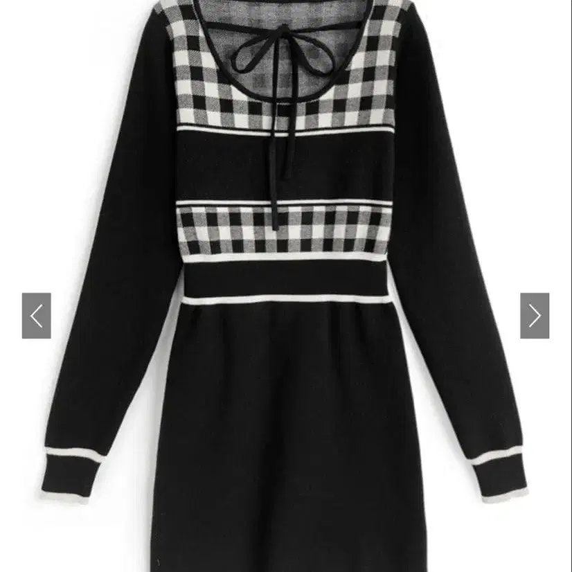 그레일 깅엄 체크 패턴 배색 라인 니트 미니 원피스[ru1353]