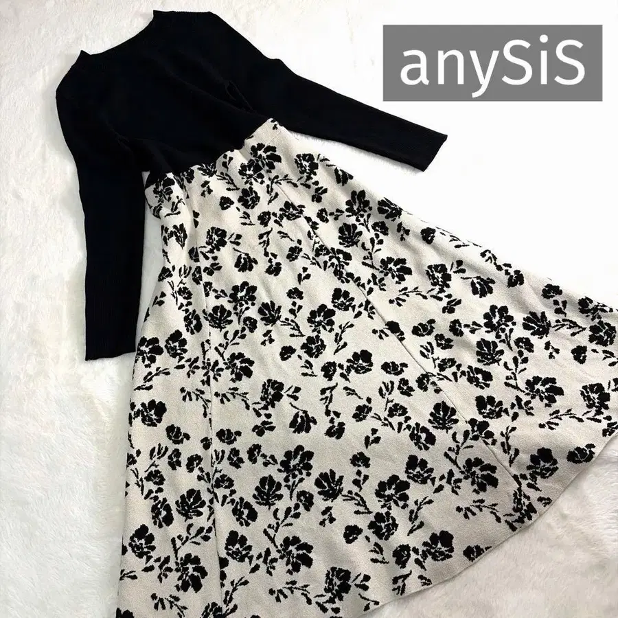 에니시스 미인백화 게재! 플라워 자카드 니트 도킹 원피스 사이즈 2
