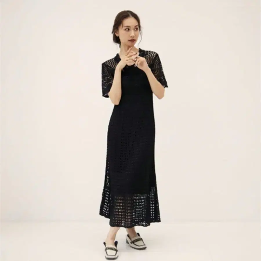 randeboo 니트 롱 원피스 반팔 시스루 니트