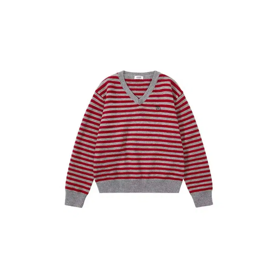 AEAE 빨간색과 그레이 스트라이프 V넥 니트