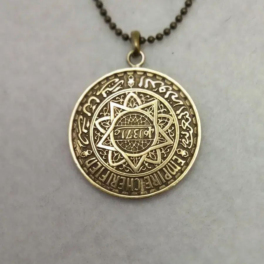 자동 번역되었어요. 원문보기별과 아라비아 문자가 아름다운 모로코 코인 목걸이입니다.