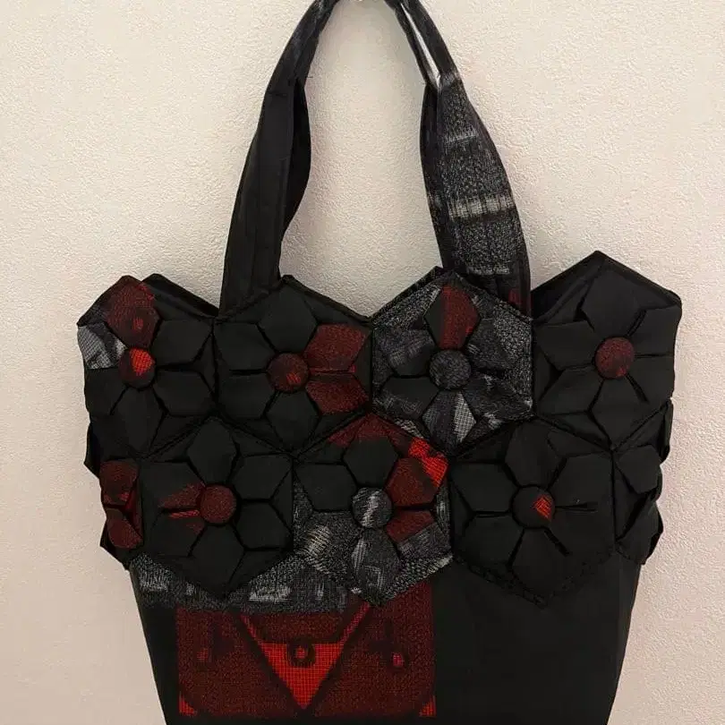 오시마 명주 기모노 리메이크 꽃 모티브 토트백 가벼운 백 핸드메이드