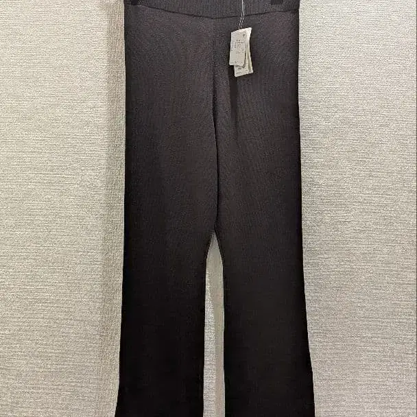 • 미라 오웬 센터 슬릿 니트 슬림 레그 팬츠 스트레치 롱 레그 효과 블랙