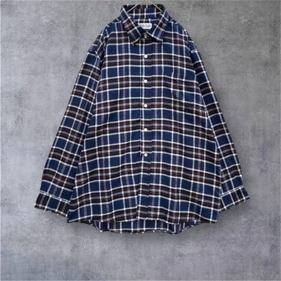 a2396 [코스비] 타탄 체크 플란넬 셔츠 블루 3L