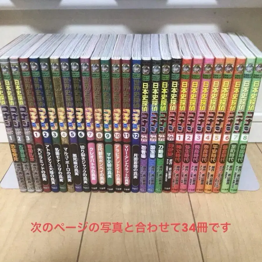 총 34권 세계사 탐정 코난 일본사 탐정 코난 첫 2장의 사진 모두입니다