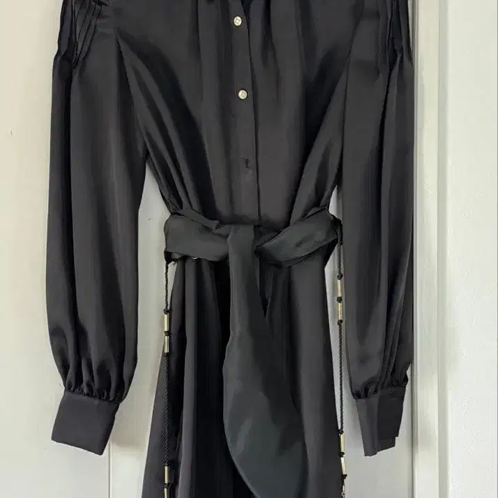 COTOO 허리 리본 포함 실크 셔츠 원피스 블랙