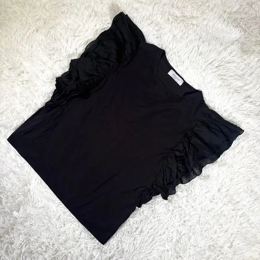 어반 리서치 [ F ] 프릴 소매 상의 시어 이소재 블랙 반팔