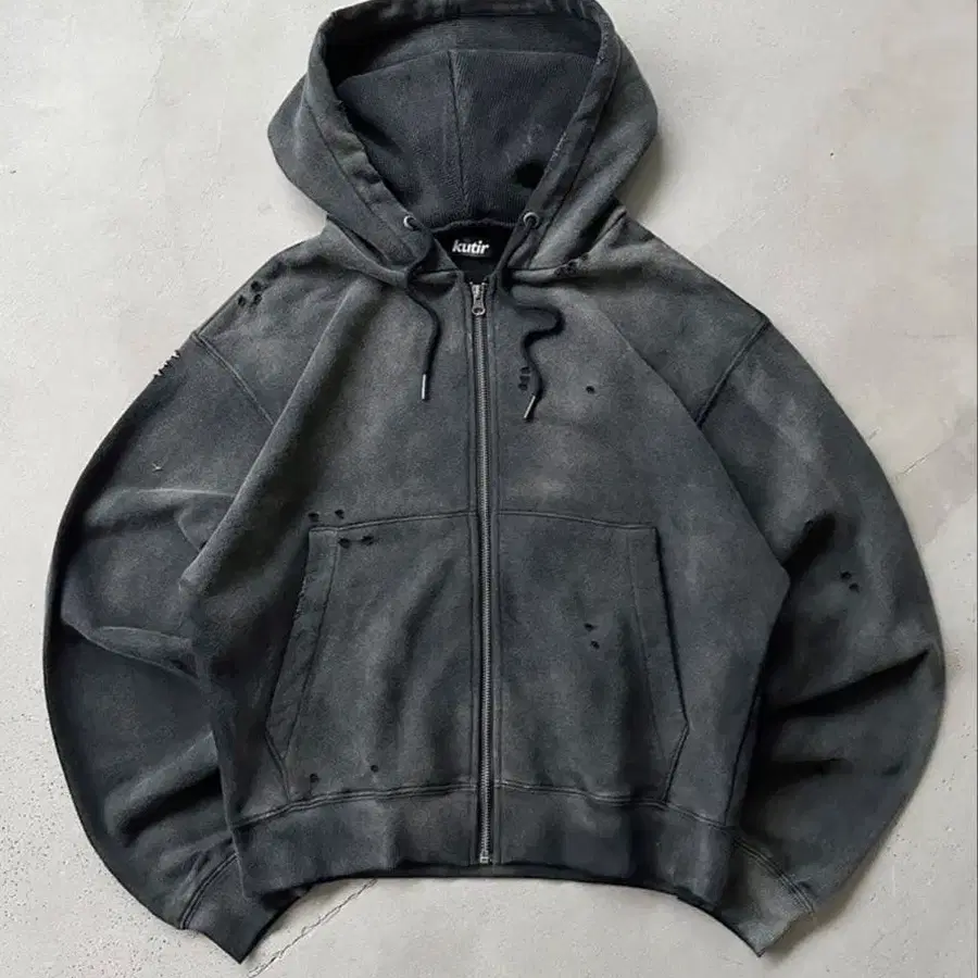 kutir 페이드 가공 서멀 도킹 데미지 지퍼 후드티