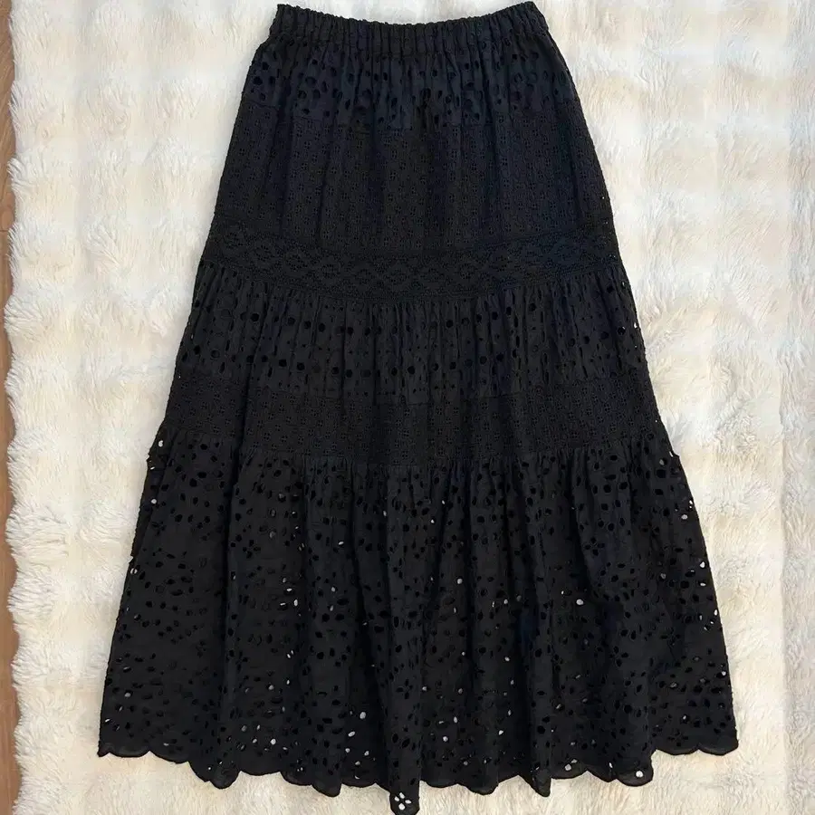 IENA 코튼 레이스 캉캉 스커트 38 블랙 플레어 롱 스커트