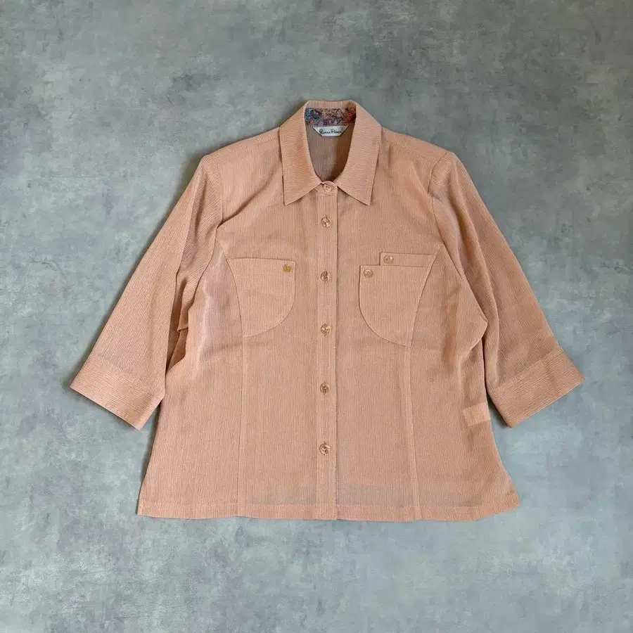 핑크 베이지 5부 소매 셔츠 2XL 빅 사이즈 큐프라 혼방 엘레강트