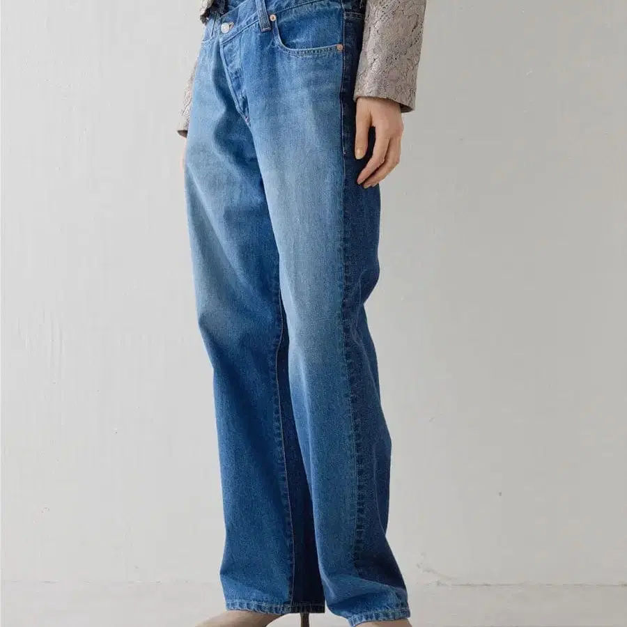 ■ 허리의 겹쳐진 디자인이 특징인 데님 팬츠.